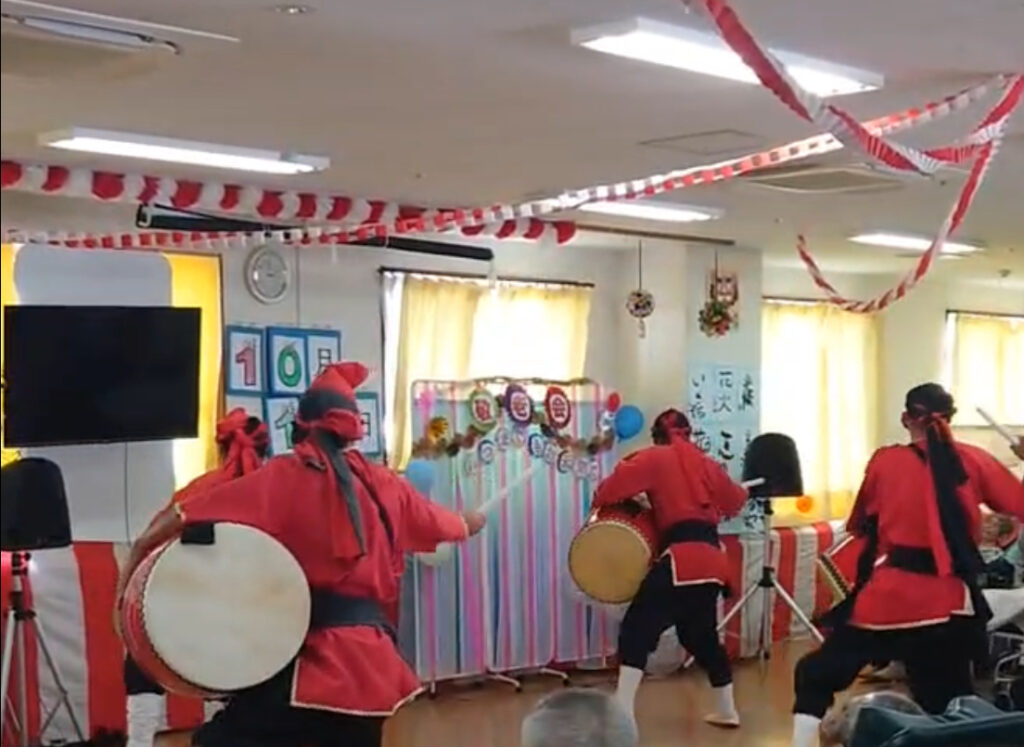 11月11日は地域の施設でおこなわれた敬老会にお招き頂き、エイサーを演舞しました。この季節はエイサーラッシュで、ほぼ毎週本番があります。